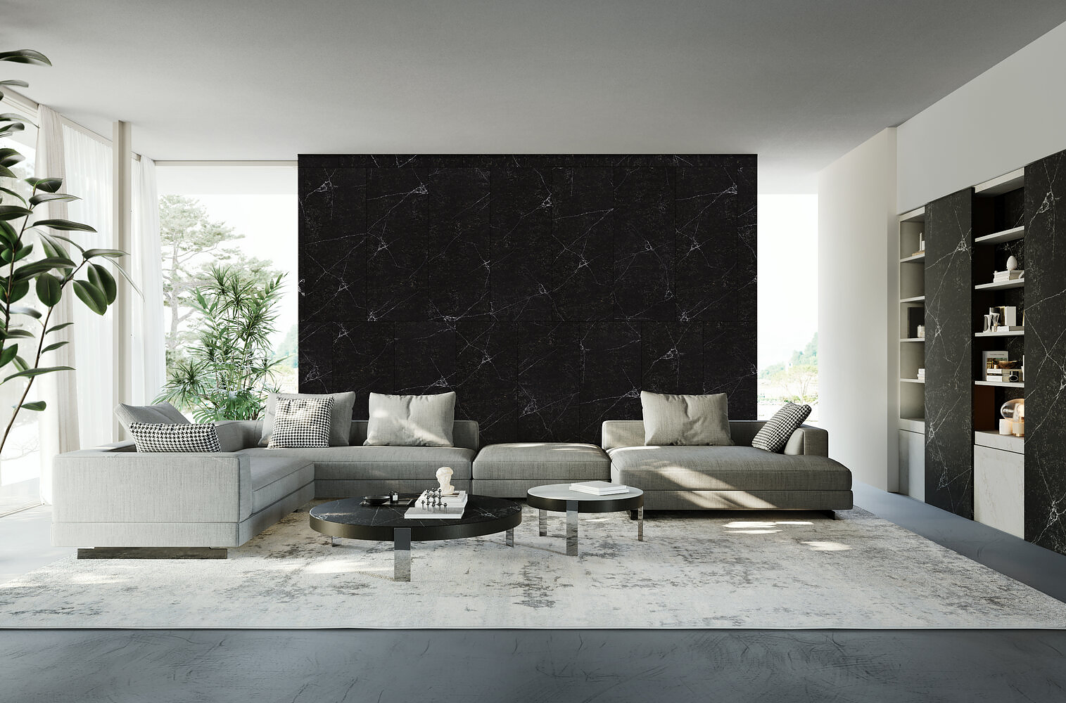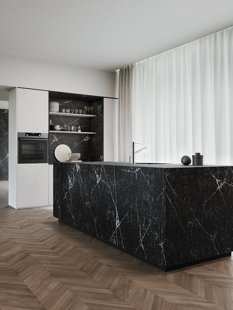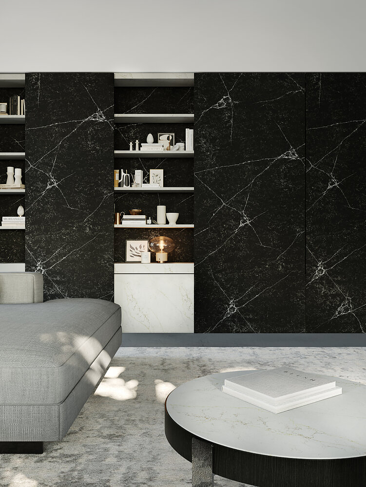 Delving into a mysterious world. Leaping into distant worlds which, on a black background rich in nuances all waiting to be interpreted, create paths, images and galaxies. Crono is a timeless slab, an idea of style that can transform and interpret any context with boldness, charm and character.