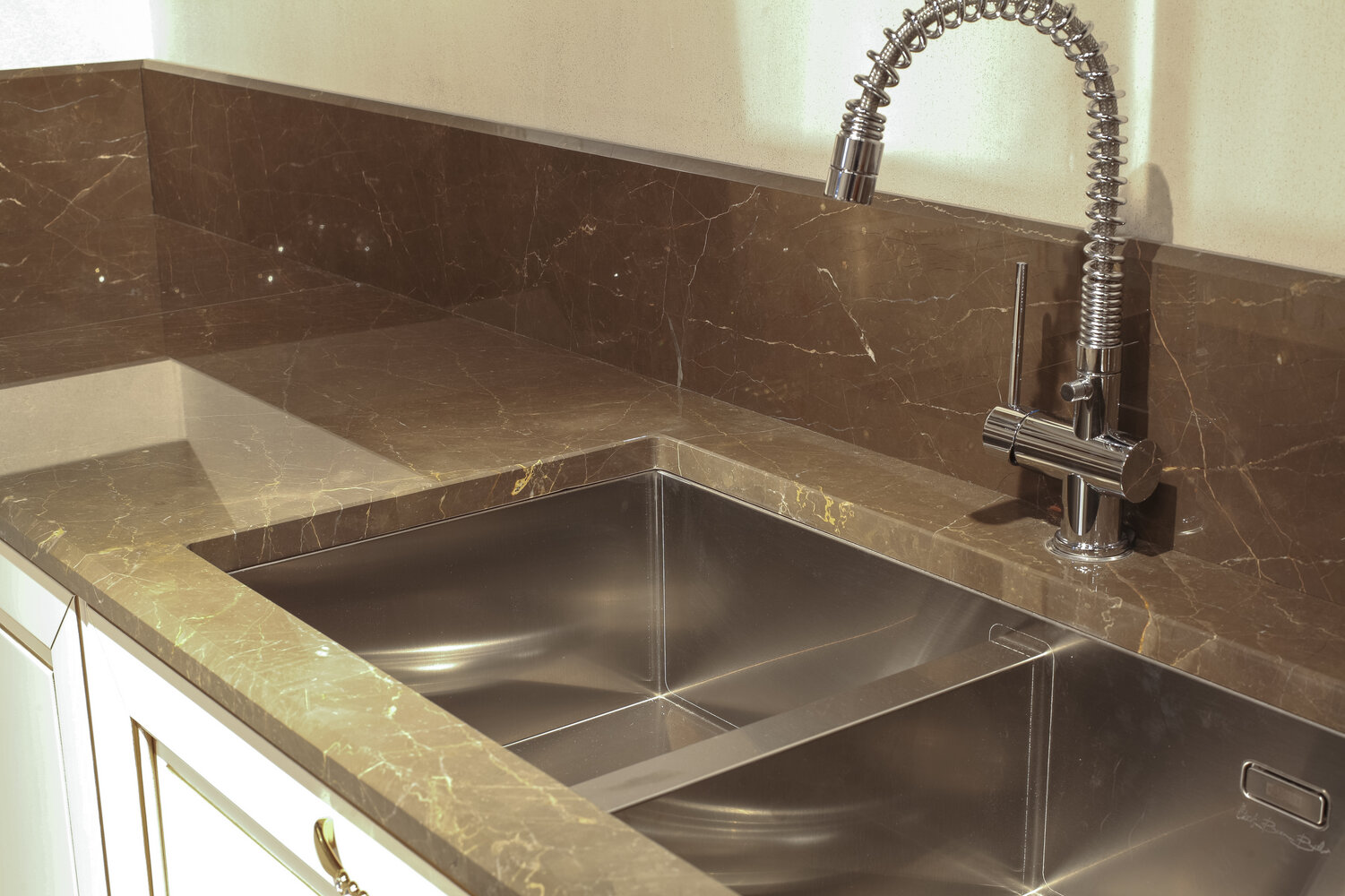 The simpler the solution, the more elegant. This is true of the Ariel Beige marble slab, which offers its naturally warm colour, rich in light, to decorate any room with a radiant, prestigious surface.