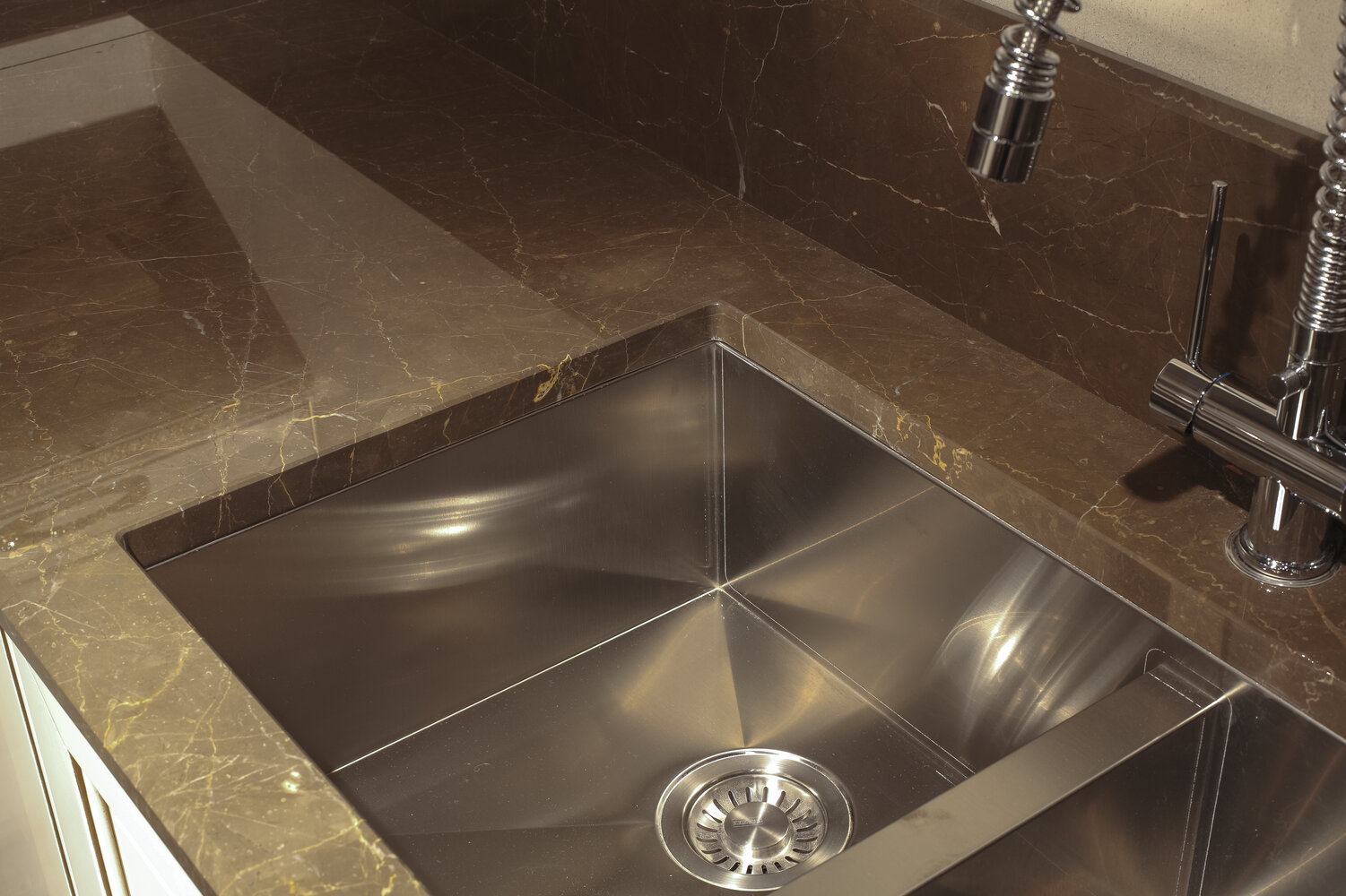 Il marmo Ariel Beige ha un fondo marrone-grigio, una grana fine e venature colore beige-giallo. E' adatto principalmente per l'arredamento interno.