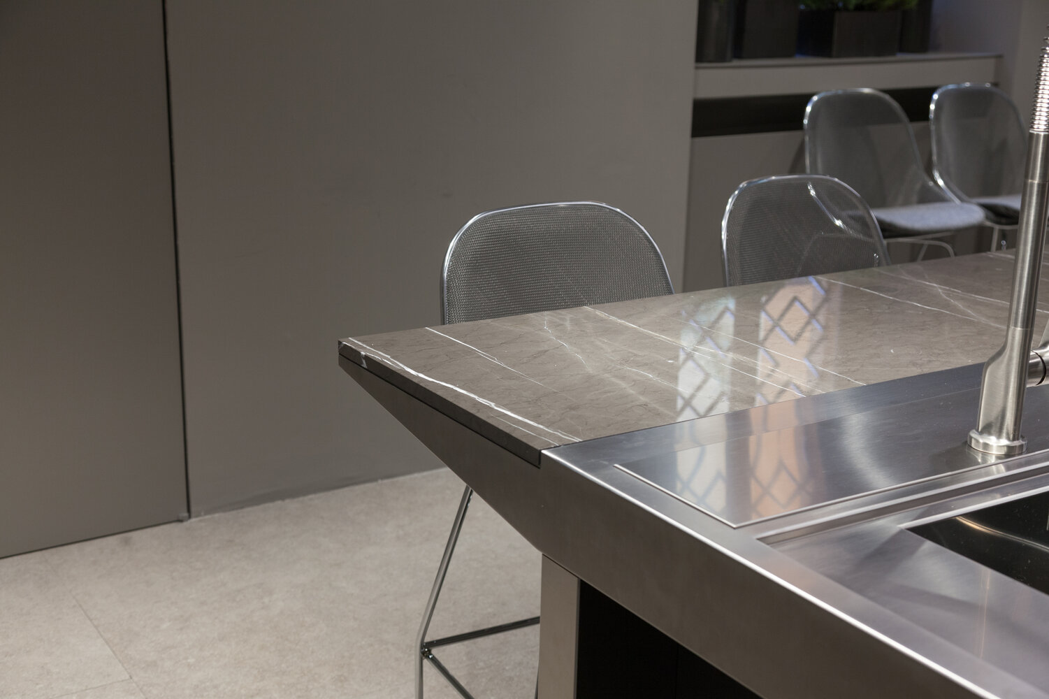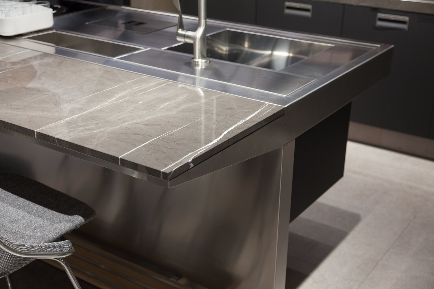 A wonderful marble slab for any interior design project intended to focus on elegance and contemporary style. Its dark grey colour conveys a feeling of smoothness that evokes the surfaces shaped by the endless motion of the sea. Sparse white veins complement the effect.