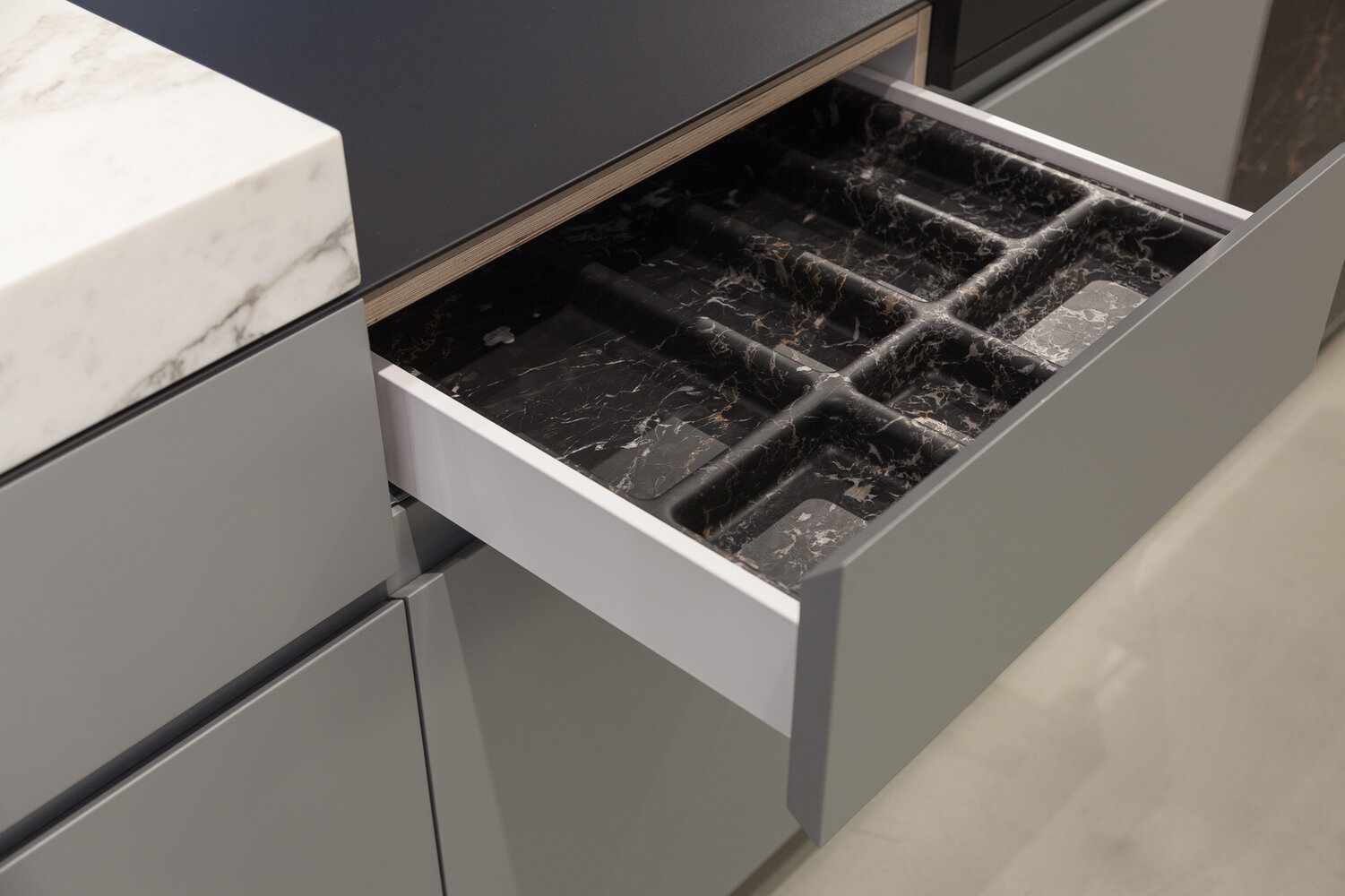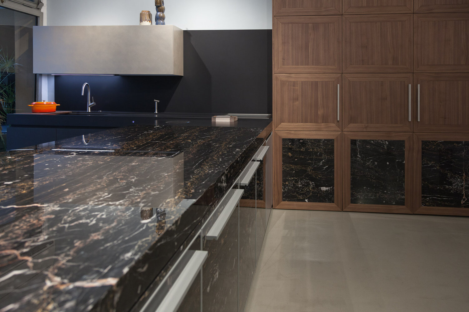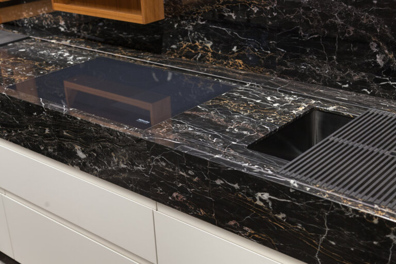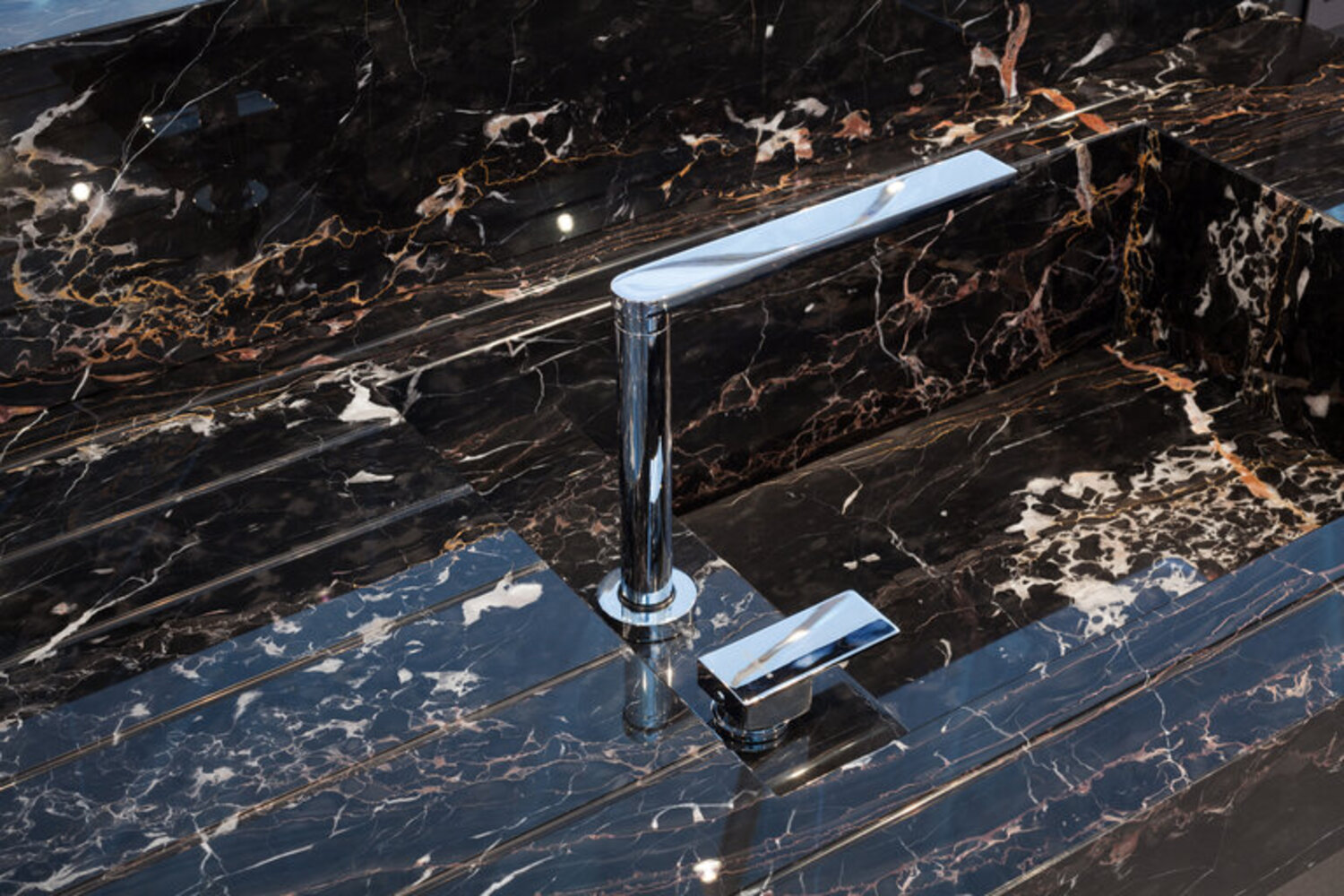 Portoro Imperiale marble is also known as Portovenere marble, as it comes directly from the Gulf of Poets, where Byron and Shelley found inspiration for their most beautiful works. The golden veins that cross its black background highlight the precious nature of the stone, making it unique and unrepeatable.