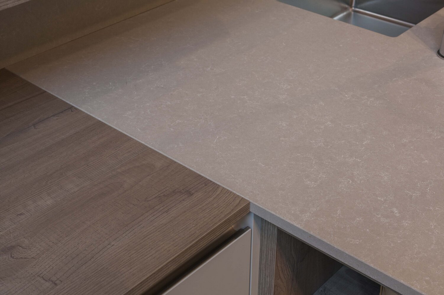 La surface Breeze Ashen Light a un fond uniforme beige, un grain fin et des veines diffuses gris clair.