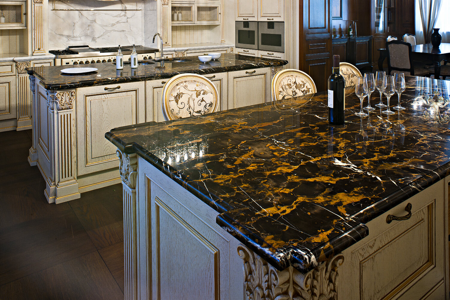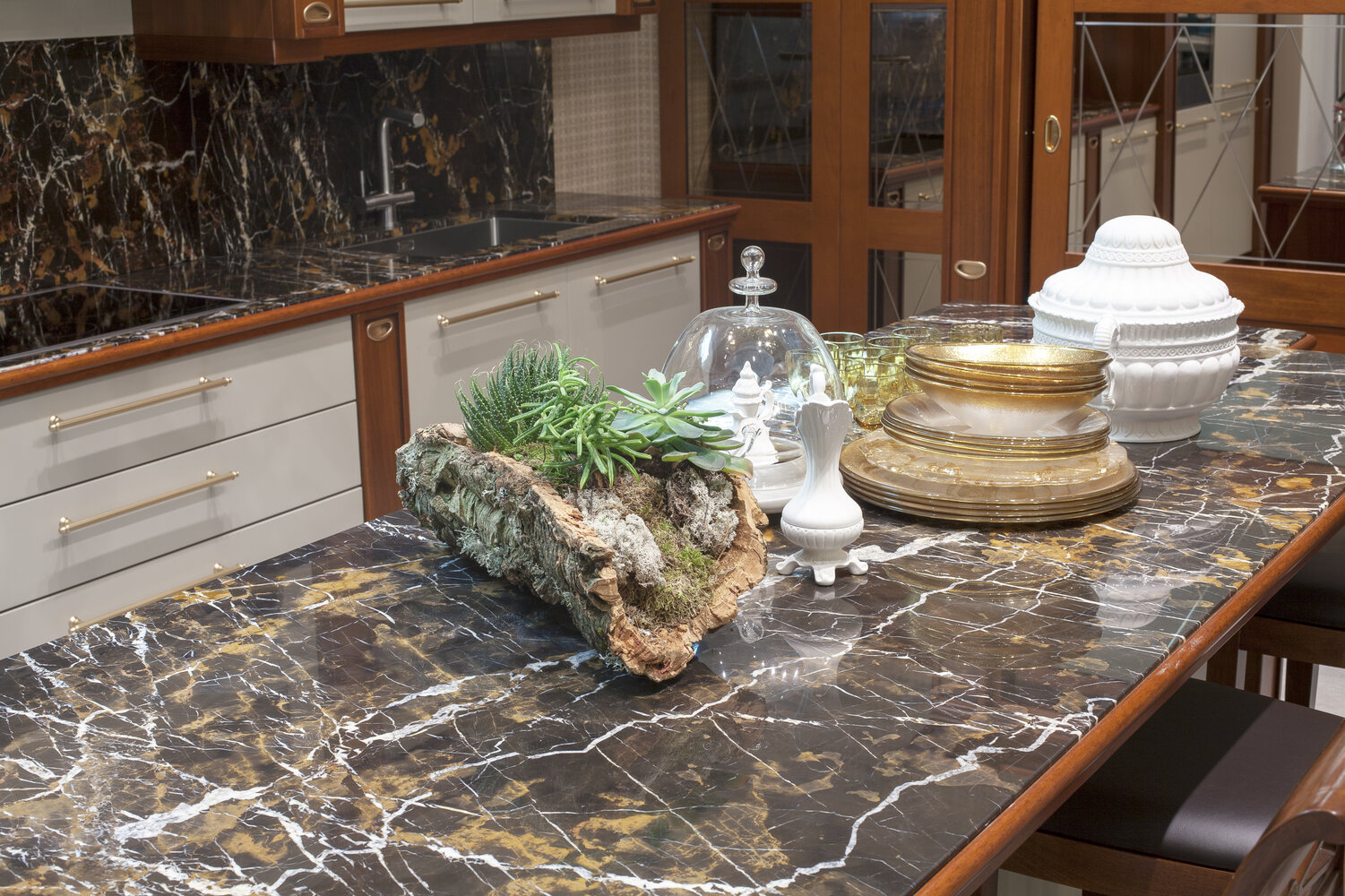 Le marbre a lui aussi son côté obscur et il s’appelle Black and Gold. Cette tranche apporte le mystère de l’obscurité de la nuit, en le rendant scintillant et précieux avec ses veines dorées. Une touche d’orient pour un style unique et majestueux.