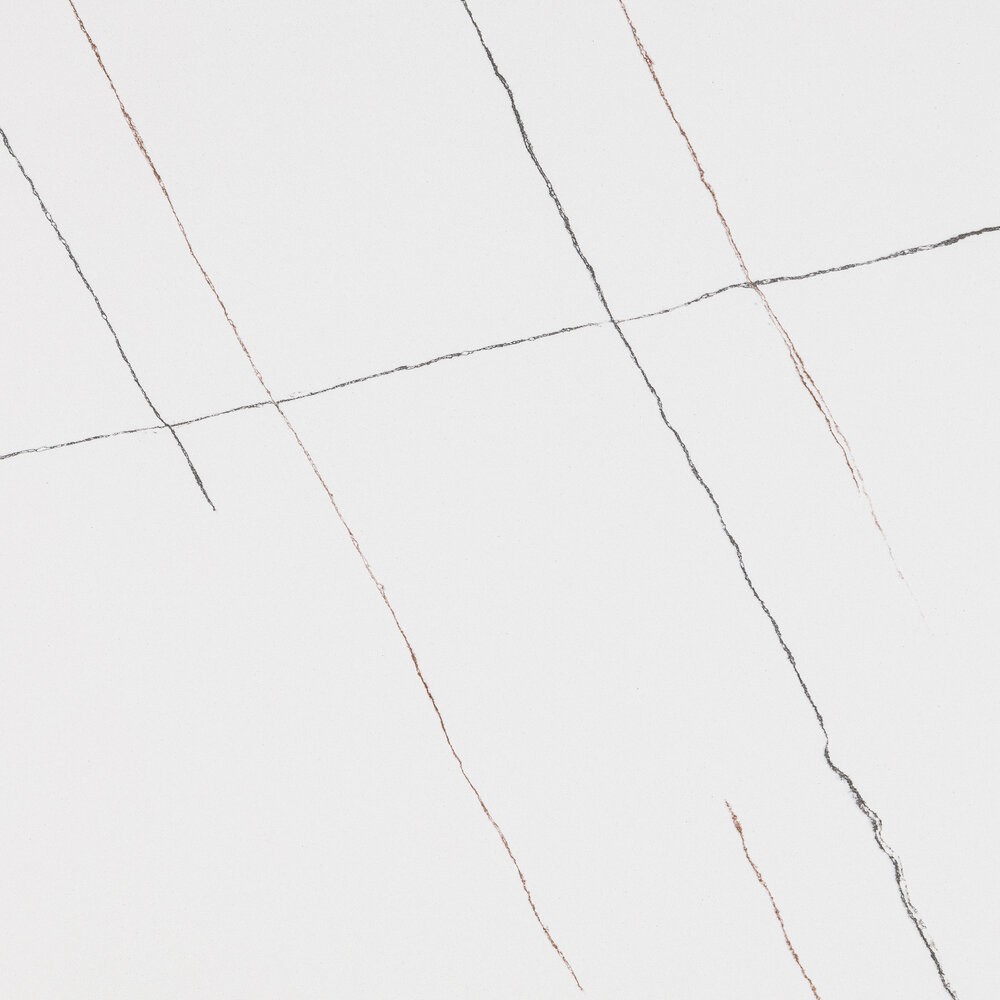 La surface Planet Halley a un fond uniforme blanc, un grain fin et de longues veines gris et orangées.