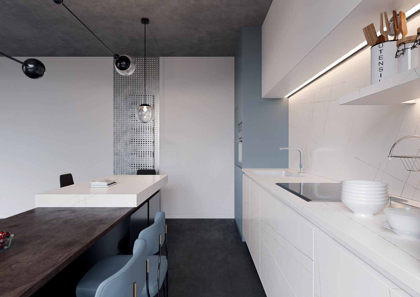 La comète Tempel laisse derrière elle un sillage de lignes orange et anthracite qui se marient avec la chaleur des pièces classiques et modernes. Une découverte astrale qui arrive de l’univers sur la terre, chargée d’une énergie positive.