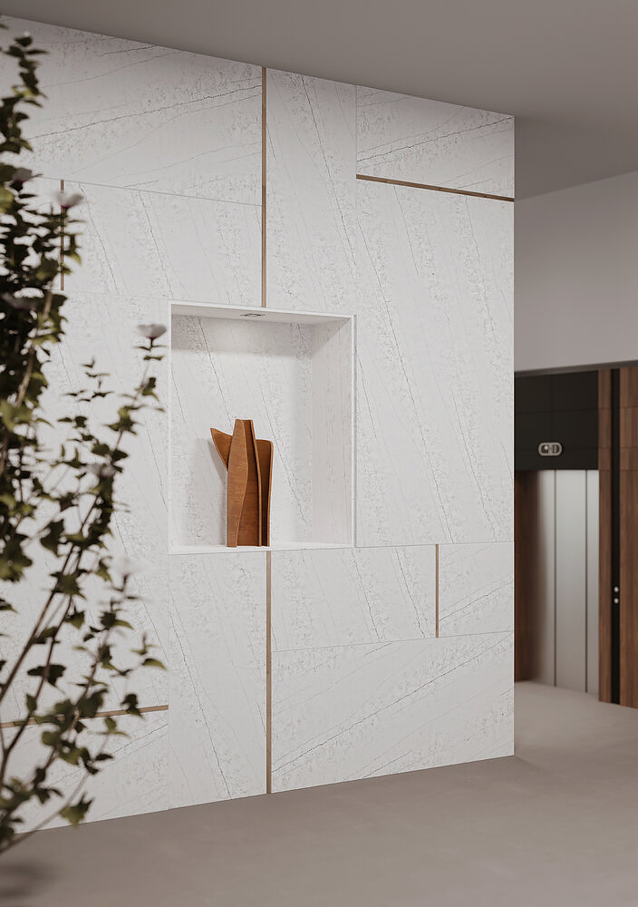 venature sulle gradazioni del grigio. Lasa è una superficie che suggerisce sensazioni di